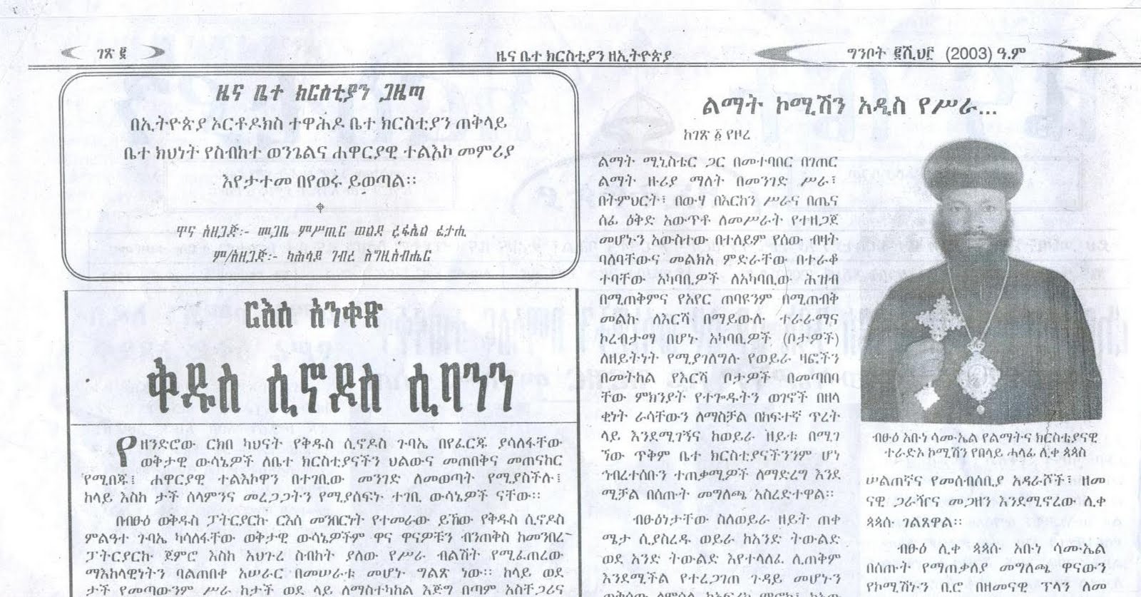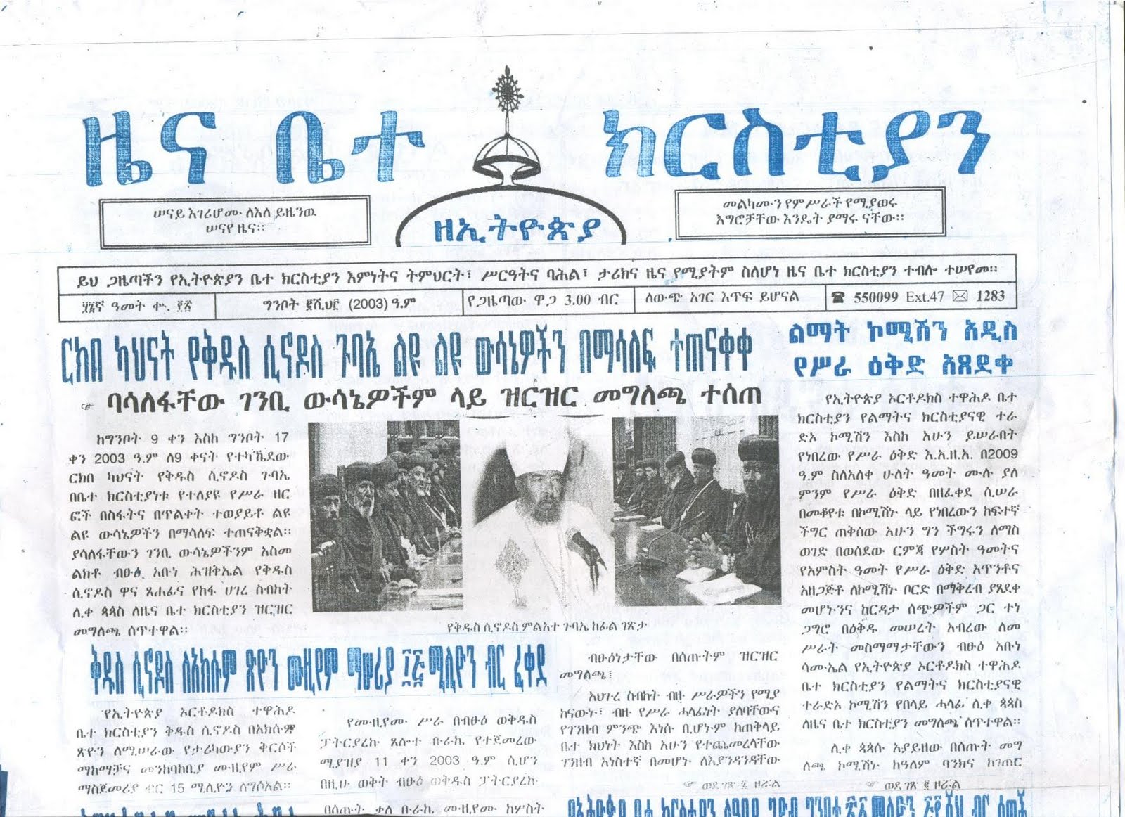 /ዜና ቤተ ክርስቲያን፣ 56ኛ ዓመት ቁጥር 120፣ ግንቦት 2003 ዓ.ም/