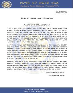 “በቋራ ቃል ኪዳን ድርጅታችን የአማራ ፋኖ ብሔራዊ ኃይልን (አፋብኃ) ከመሰረትን በኋላ በአማራ ፋኖ በጎጃም በኩል የተነሱ የልዩነት ሃሳቦች ነበሩ። እነዚህ የልዩነት ሃሳቦች በውስጥና በውጭ ገፊ ምክንያቶች መልካቸውንና ዓይነታቸውን እየቀያየሩ ቢቆዩም በተደረጉ ተደጋጋሚ ውይይቶች በዛሬው ዕለት ማለትም ነሃሴ 27 ቀን 2017 ዓ.ም. መቋጫ አግኝቷል። በመካከላችን የተፈጠሩ ልዩነቶችን ፈትተን አንድ ሆነናል። በውይይታችንም የቋራ ቃል ኪዳንን አድሰናል።”