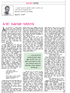 ውድ አንባብያን፤ ከዚህ በታች ያለው ጽሑፍ ከፌስቡክ ድረ ገጽ ያገኘነው እና እናንተ ደጀ ሰላማውያን ብትመለከቱት ይጠቅማል ያልነው ነው። ፀሐፊው ቀሲስ ወንድምስሻ አየለ "በአዲስ ጉዳይ መጽሔት መጋቢት ፲፭ ለታተመው ለበዕውቀቱ ስዩም ዐምድ፡ «እግር አልባው ባለክንፍ» በሚለው ጽሑፍ ላይ የቀረበ ሂስ።" ሲሉ ያቀረቡትን ይህንን ጽሑፍ በዕውቀቱ ሥዩም ከተባሉት እና ለዚህ ውይይት መነሻ ከሆኑት ፀሐፊ ጽሑፍ ጋር አብረን አቅርበነዋል። ተመልከቱት። የተለያዩ ሰዎች የሰጧቸውን አስተያየቶች ለመመልከት ወደ "ፌስቡክ ገጻችን" ጎራ ይበሉ።