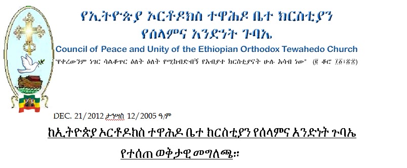 ከኢትዮጵያ ኦርቶዶክስ ተዋሕዶ ቤተ ክርስቲያን የሰላምና አንድነት ጉባኤ የተሰጠ ወቅታዊ መግለጫ።