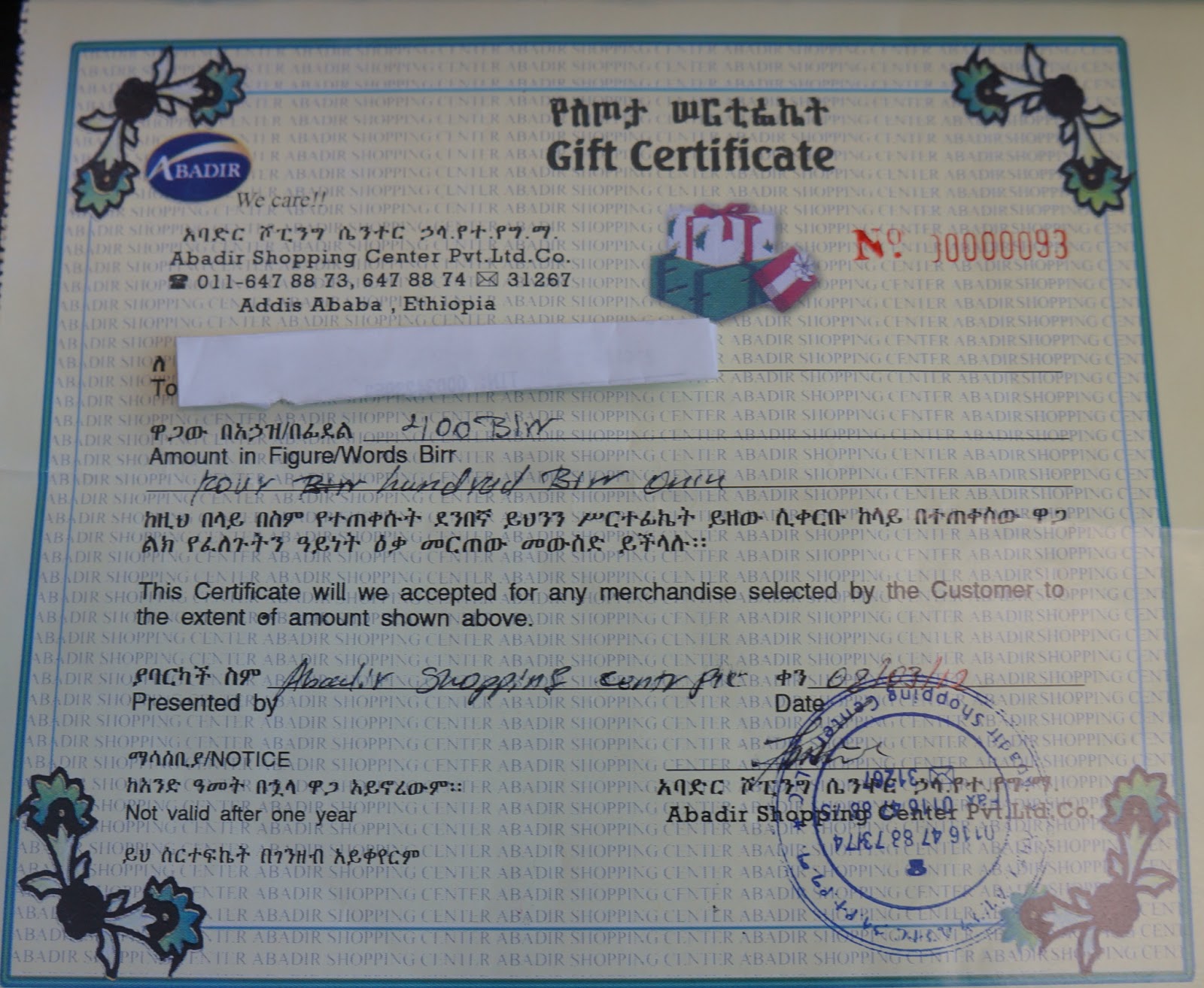 ታድያ ትናንት ማታ ከሱፐር ማርኬቱ ስንወጣ አንድ ፖስታ ሰጡን፡፡ ፖስታውን ስንከፍተው የስጦታ ካርድ ነው፡፡ ደንበኞቻችን ስለሆናችሁ ይህንን ካርድ ሰጥተናችኋል ብለው ከሱፐር ማርኬቱ በነጻ ዕቃ የምንወስድበት ካርድ ሰጡን፡፡