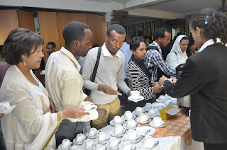 እንደ ልማዴ ከ፬ኪሎ የ፳፪ን ታክሲ ተሳፈርኩኝና ጉዞ ወደ አክሱም ሆቴል ሆነ። ሆቴሉ ስደርስ ሰዓቴን ተመለከትኩኝ ልክ ፮፡፵፭ ይላል። በትክክለኛው ሰዓት በመድረሴ በመደሰት ፍተሻውን አልፌ ወደ ስብሰባው አዳራሽ አቅጣጫ ጠቋሚ በሆኑ እና ጎድግዳ ላይ በተለጠፉ ጽሑፎች አማካኝነት ፎቁን ወጣሁ። ሁለተኛ ፎቅ ላይ የሚገኘው የስብሰባ አዳራሽ ስደርስ የተወሰኑ እድምተኛች ቀድመውኝ ምዝገባ እያካሄዱ ደረስኩኝ። እኔም እንደነሱ ምዝገባዬን አከናወንኩኝና በረንዳው ላይ ቆም አልኩኝ። በአንዱ ጥግ ላይ በቅርቡ የታተመውን “የኔ ጀግና” ን ጨምሮ ሌሎች መጻሕፍትን የያዙ ወንድሞችና እህቶች አየሁና ጠጋ ብዬ የሌለኝን መርጬ ያዝኩኝ። ትንሽ እንደቆየን ወደ አዳራሽ እንድንገባ ተደረገ ቦታ ቦታችንንም ያዝን። ኤልያስም ከዲ/ን ምንዳዬ ብርሃኑ ጋር እየተመካከረ ክራሩን ለስለስ ባለ ሁናቴ የንስሃ መዝሙር ማሰማት እና ለዝግጅቱ የታደሙቱ ሁሉ እስኪደርሱ እና መርሃግብሩ አስኪጀመር ድረስ ቀድመው የመጡትን ሃሳብ ያዘ። ቀስ እያለም አዳራሹ በእድምተኞች መሞላት ጀመረ። ተጋባዥ ምሁራንና የክብር እንግዶችም የተዘጋጀላቸውን ቦታ በአስተናጋጆች አማካኝነት እንዲይዙ ተደረገ።