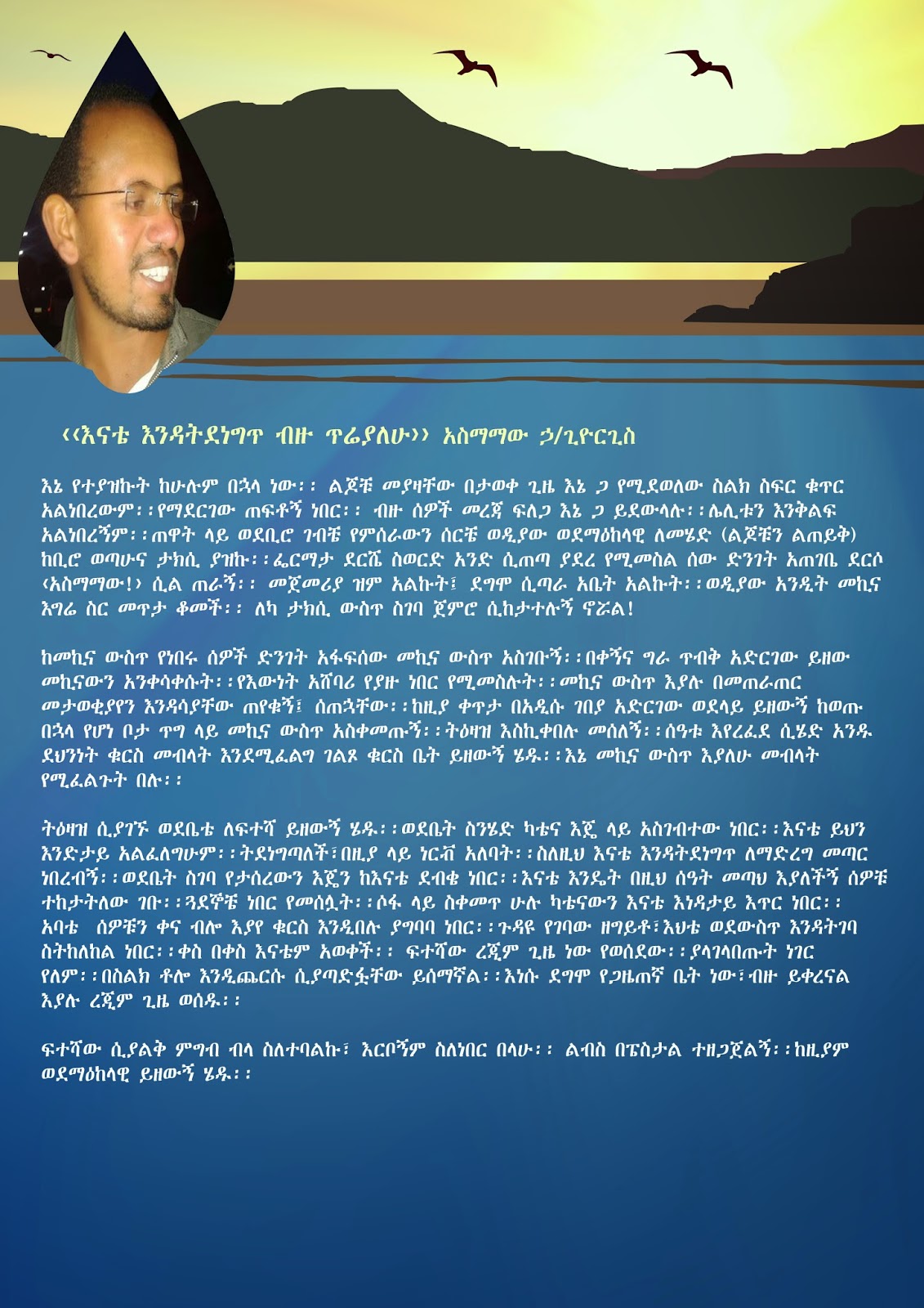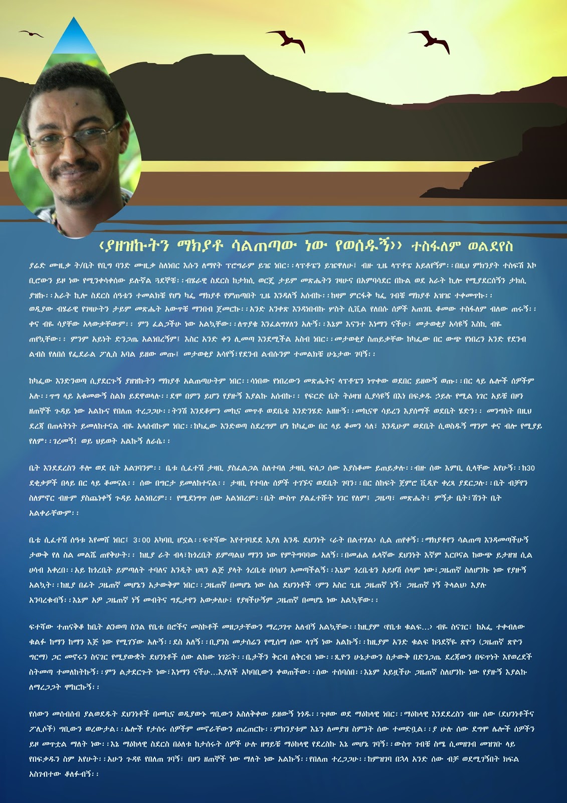 A generation which misuse and abuse those two golden chances (As Eshetu mentioned) are still in the throne. And hunting the ‘Free spirit’ to death. Thus, we are not able to live our dreams and the spirit of our generation. But, by saying this I am not fool to dichotomize the problem in a ‘we’ and ‘then’ spectrum. Rather there are many ‘wes’ in them and the vice-verse.